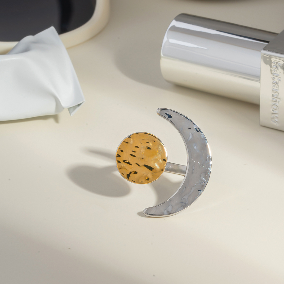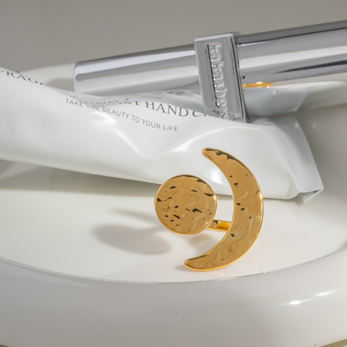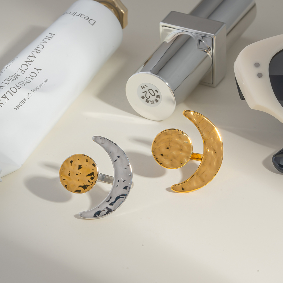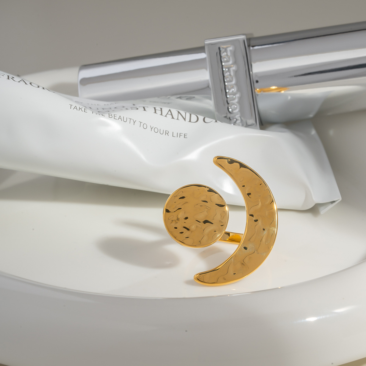 1pc New Style Stainless Steel Moon-Shaped Open Ring, Adjustable Fade-Resistant Jewelry for Women, Suitable for Daily Party Wear.