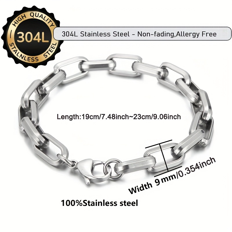 1pc 's Heavy Duty Interlocking Link 304L Stainless Steel Bracelet - 304L Hypoallergenic Non-Fading, Heavy Chain for Everyday & Formal Wear, Birthday/Christmas/Graduation Gifts for - Durable 's Jewelry for Parties & Everyday U