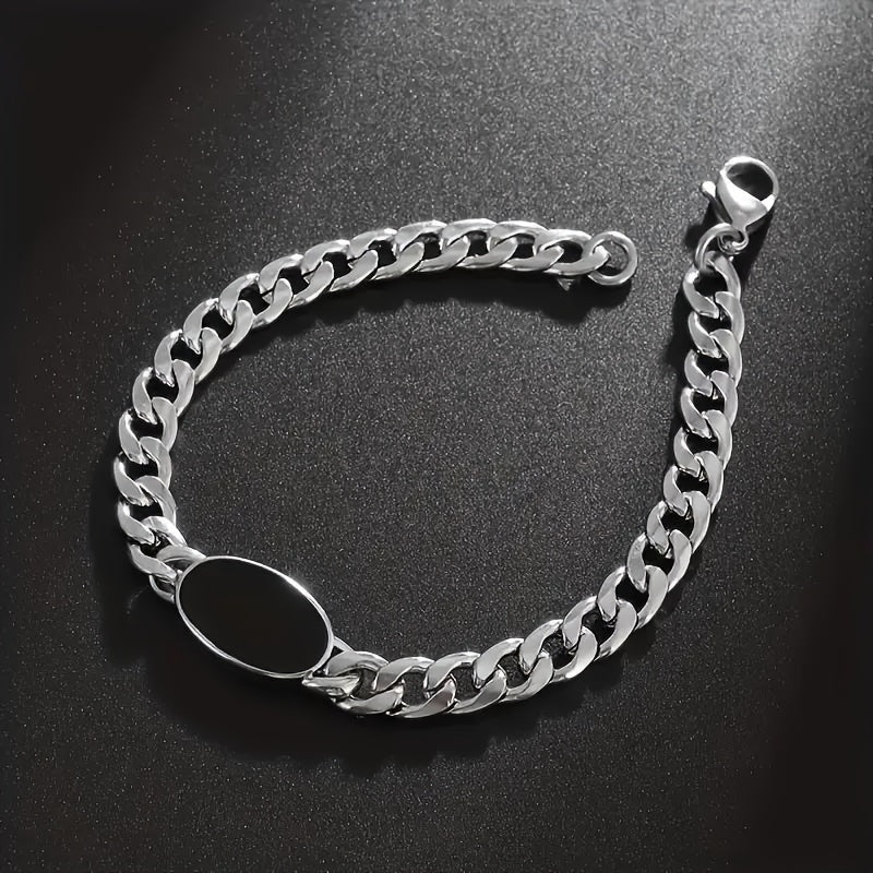 Chain Bracelet with Black Oval Synthetic Stone Pendant - Unisex