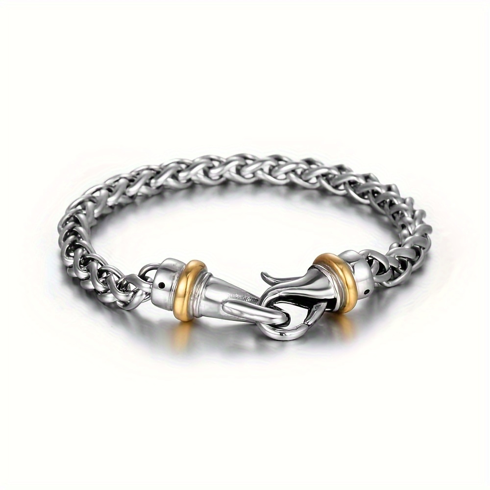 Bracelet with Golden Accents, Intricate Twist Design Polished Metal Chain for Casual & Formal Wear