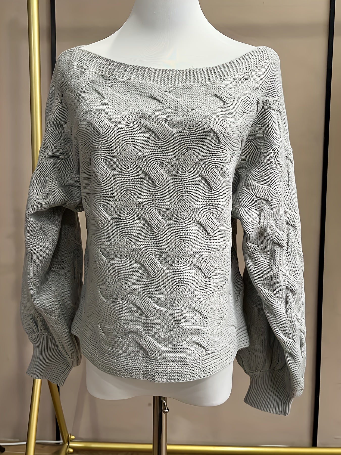 Off-Shoulder Batwing Sleeve Textured Knitwear, Pullover