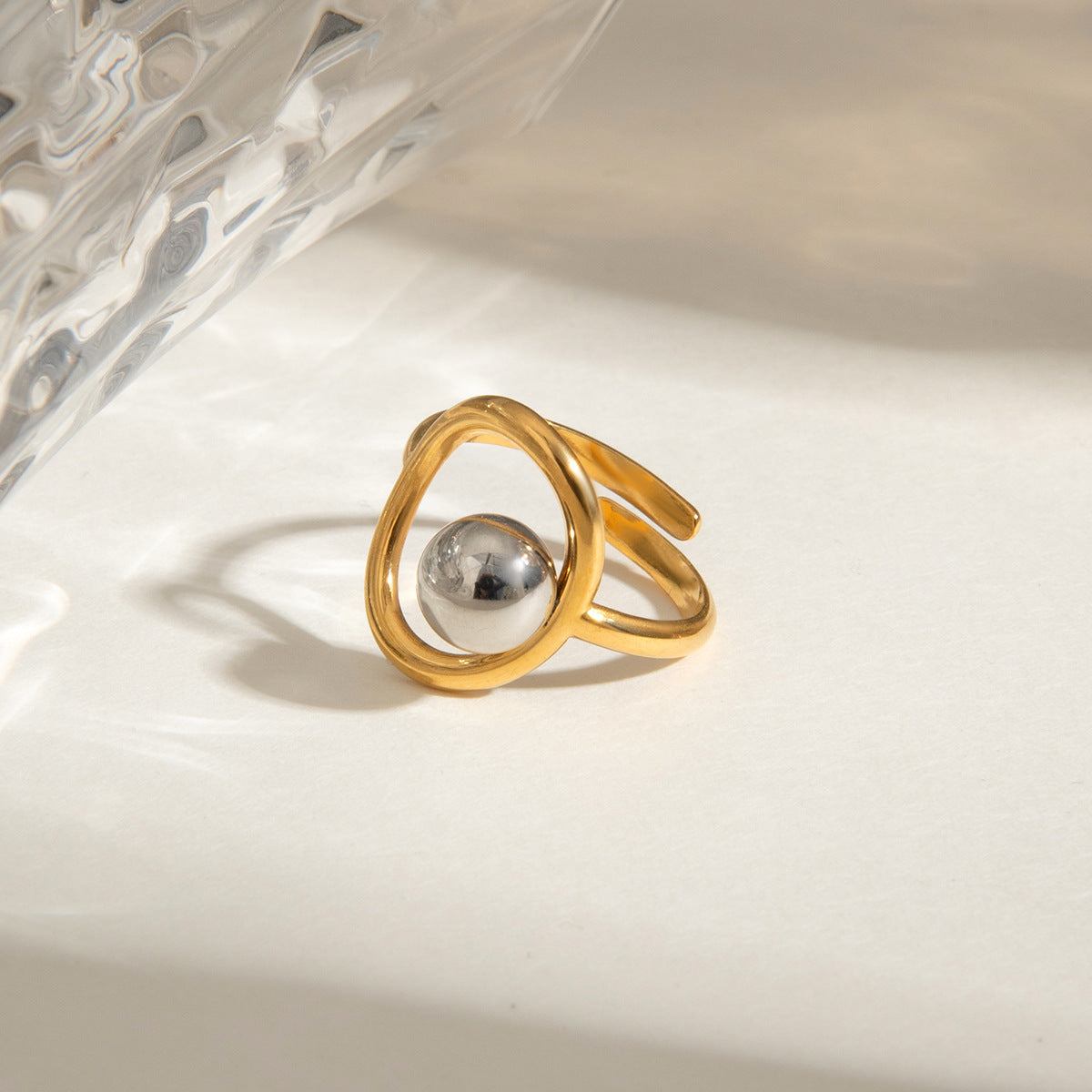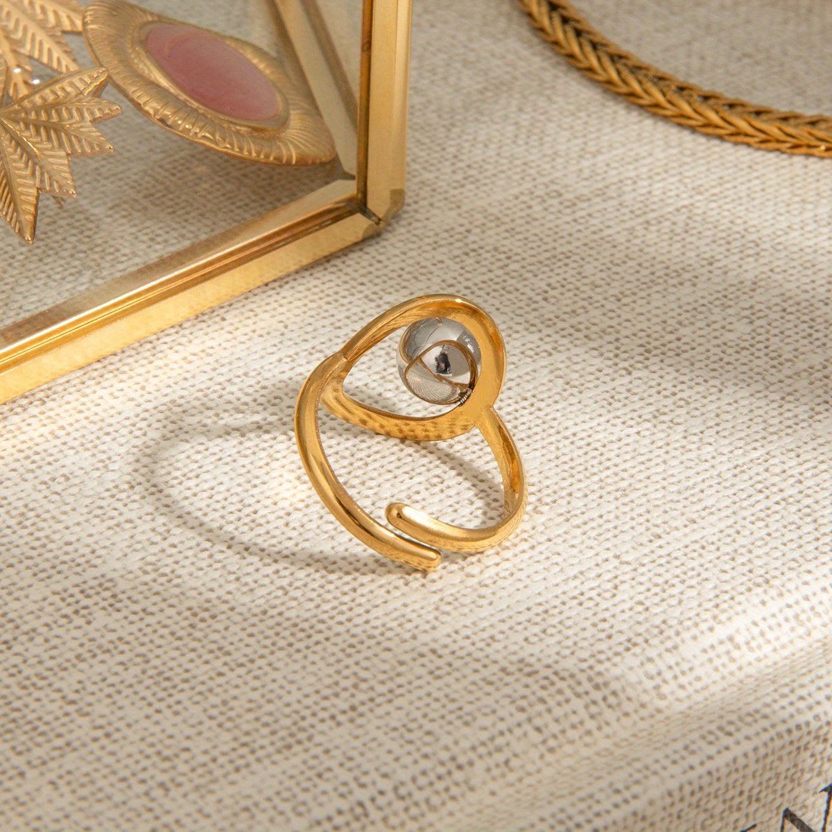 Uworld Women's Minimalist Stainless Steel Open Ring - Adjustable Sphere bead, Everyday & Formal Jewelry, Valentine's Gift, Durable Everyday Wedding Band, Adjustable Accessory, Twisted Band, Polished Finish